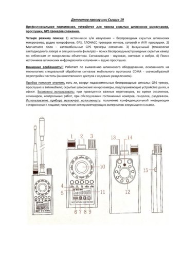 | Наименование | Детектор прослушки Сыщик 19. |